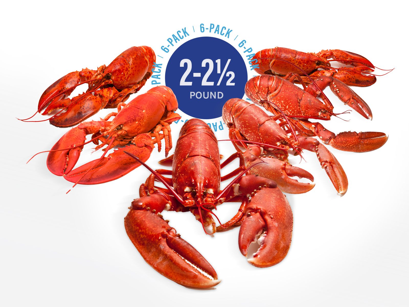 2-2 1/2 lb Live Maine Lobsters (6 Pack!)