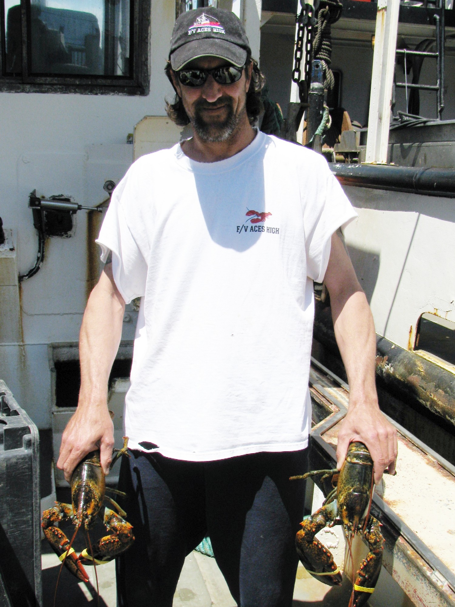 The Captain of the ACES HIGH, Teddy McCaffrey. Teddy has been fishing his whole life! He started out with his Dad, Ed, when he was old enough to stand up on Deck, and worked his way "OFFSHORE", working for years crewing and captaining with Captain Tim on both the MONITOR and the COURTNEY ELIZABETH. He then bought and refurbished the ACES HIGH for himself. Capt. Tim says: "He is one of the finest young skippers to come along in a long, long time and boy, can he catch lobsters!" | |